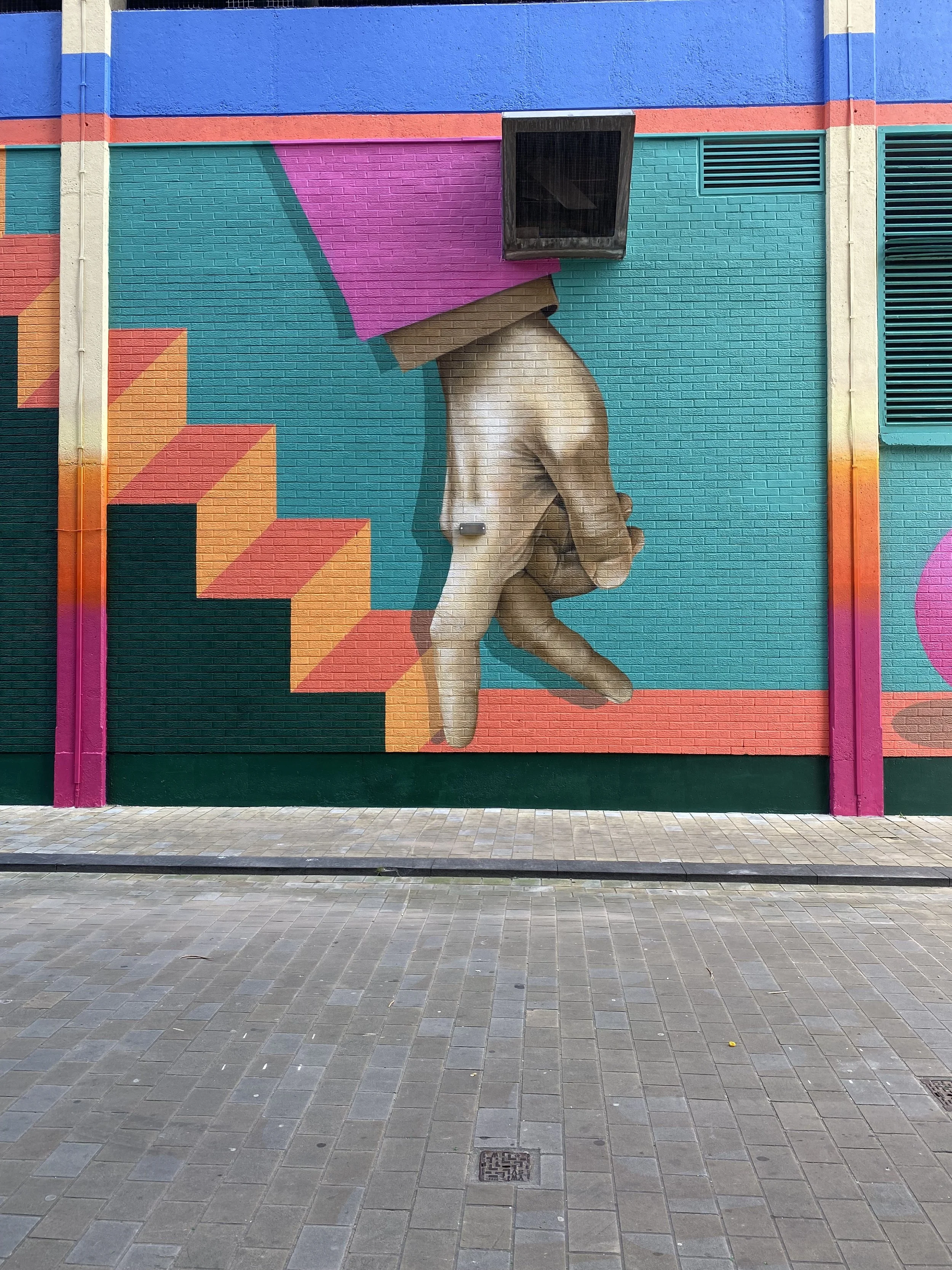 A permanent public art mural brings a playful and vibrant energy to the south entrance of Leeds Train Station.